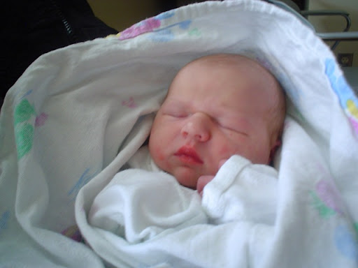 It's official, we have a baby girl! Jacquelynn was born at 8:41 last night. She was 21 inches long and weighed 7 pounds and 6 ounces. She's actually a little heftier than her brother was. Here are some first pictures of the little beauty.